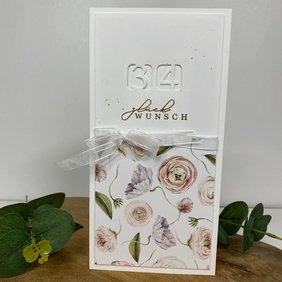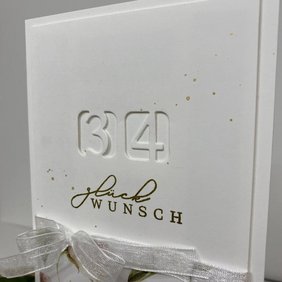 Eine schöne Karte zum Geburtstag. Edel und schick. Im oberen, weißen Teil sind leichte Goldsprenkler vorhanden.
