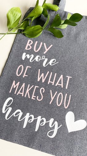 Die Tasche wurde von mir bedruckt. Der Druck (Spruch) ist in weiß und zartem rosa.